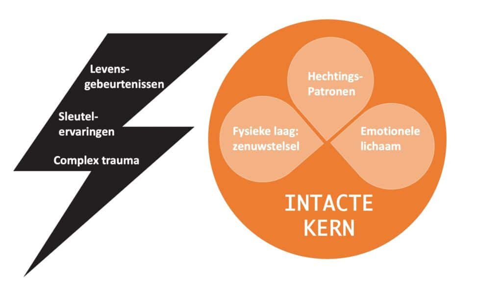 Omdat de gebeurtenissen niet verwerkt konden worden, raakten deze afgesplitst en dragen ze nog altijd de bijbehorende emotionele lading. Er is vaak sprake van complexe emoties. De gebeurtenissen deden zich voor in een relatie. Dit maakt dat er naast emoties als verdriet en boosheid ook sprake is van emoties als schuld- en schaamtegevoelens. Dit vraagt het werken met sleutelervaringen, het verwerken van de emoties die daarmee samenhangen, en het helen van oude wonden.